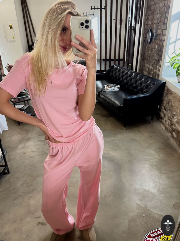 Suurepärane, kvaliteetne komplekt. Saab kasutada nii koduriietusena kui ka väljas kandmiseks. Pildil on 1,73 m pikkune.