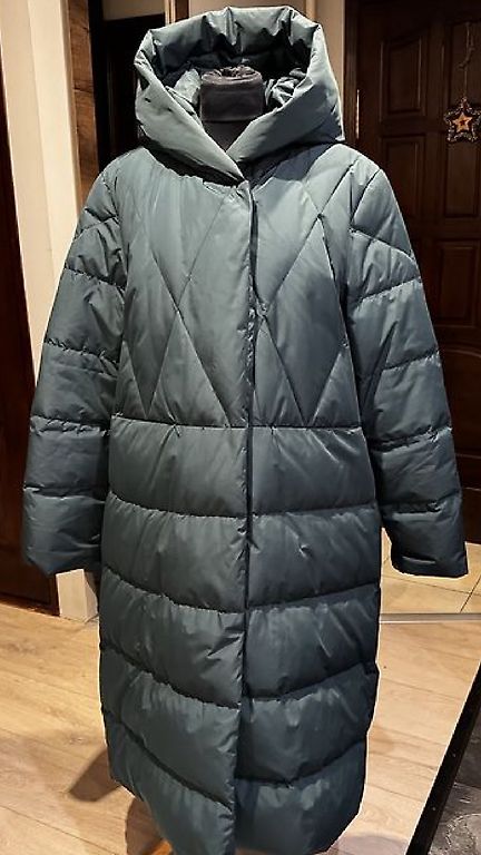 Väga ilus! Puusad kuni 130 ja rinnad kuni 125. Minu pikkusele 162, üle põlve! On vooder, taskud!