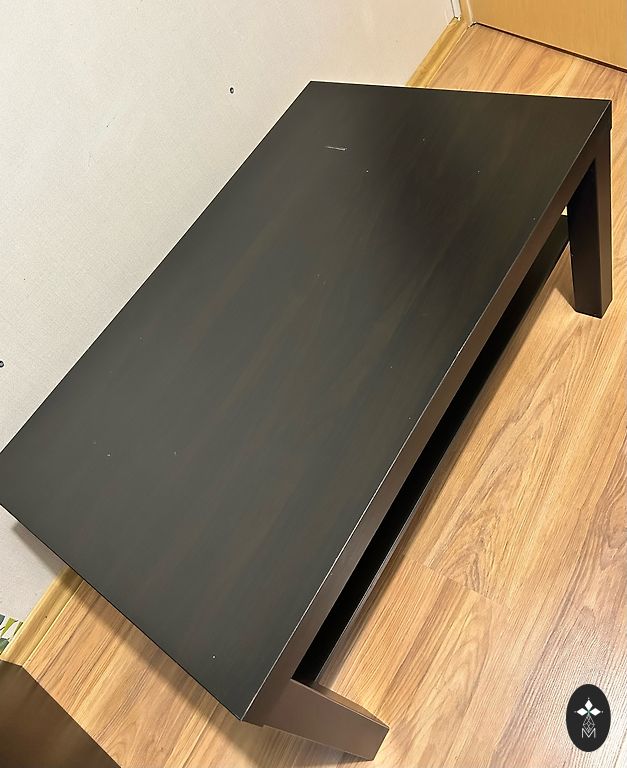 Kasutatud, kuid heas seisukorras kohvilaud, nurkade kaitsed, et kaitsta lapsi