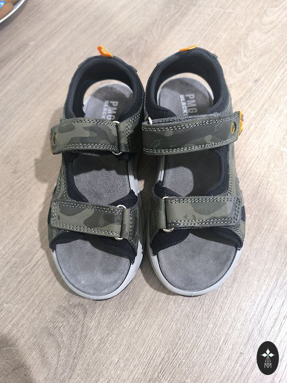 Jaunas sandales. Ne reizi nav vilktas, jo aizmirsām, ka tādas skapī stāv un tagad jau ir par mazu.