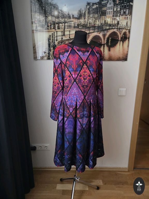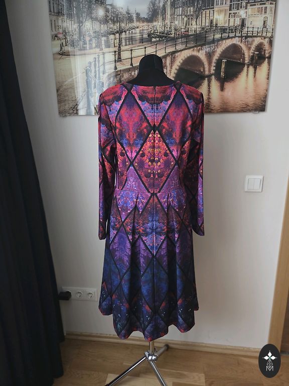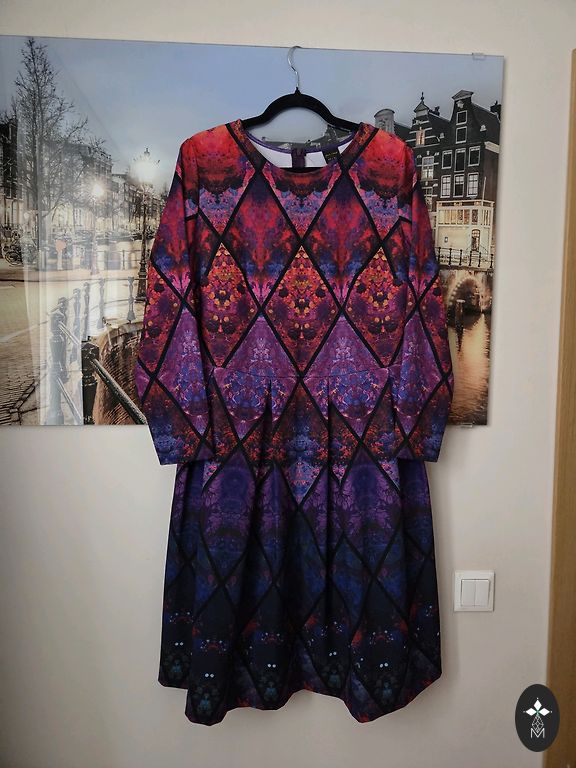 Продаю бархатное платье Marks & Spencer размера UK 16. Этикетка производителя, к сожалению, удалена, так как была перешита манжета вокруг шеи, она была жесткой. Без растяжения в груди 90 см, в бедрах 100 см.