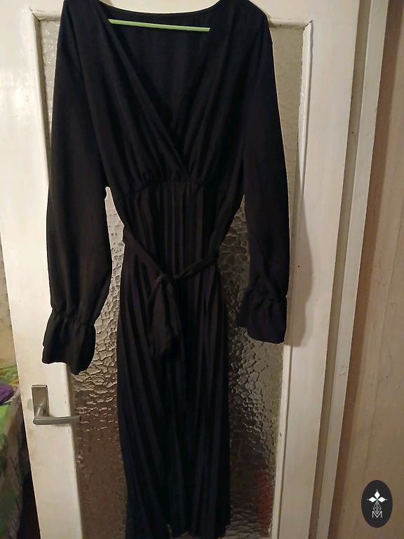 Очень красивая! Надета один раз на мероприятие. С небольшим блеском, пышными рукавами, интересным вырезом и складками по бокам, которые скрывают маленькие недостатки... Куплена новой от Aboyt you, удобная и очень эластичная. Длина примерно 112, в груди 45-55×2, есть подкладка, не будет просвечивать, дорогой бренд. Дешевле не будет и доставка в цену тоже не входит!!!