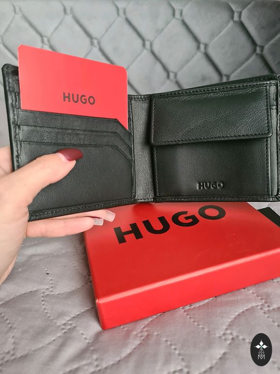 New leather Hugo Boss wallet. Spacious, plenty of room for cards. Wide coin compartment. Great gift.