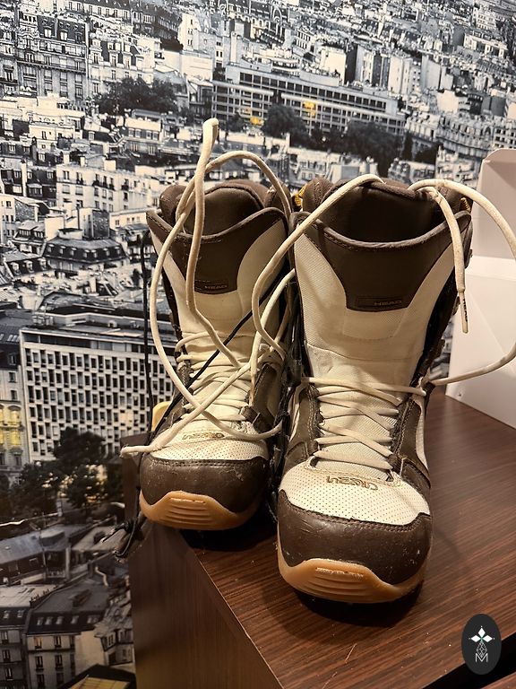 Lamar laud (144 cm) koos kinnituste ja saabastega (suurus 38). Laud on keskmise jäikusega, kergesti juhitav. Näha on kasutusjälgi, mis ei mõjuta sõitmist, libisemise poolel kriimustusi pole. Olayne - Riia.