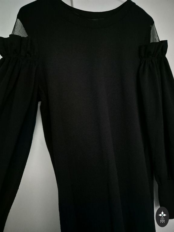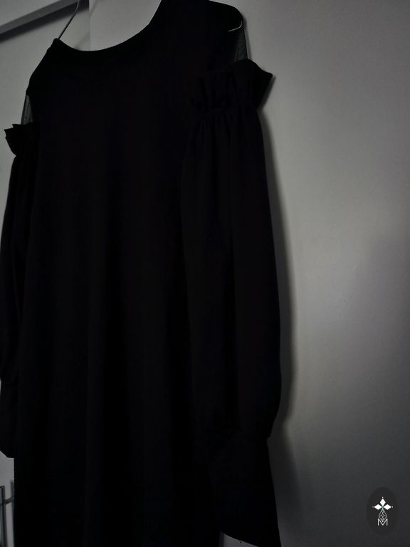Thick fabric dress. Length 86 cm. The bottom is very full, which visually accentuates the waist. Waist 74 cm. It has a zipper. Bought new, worn a few times.