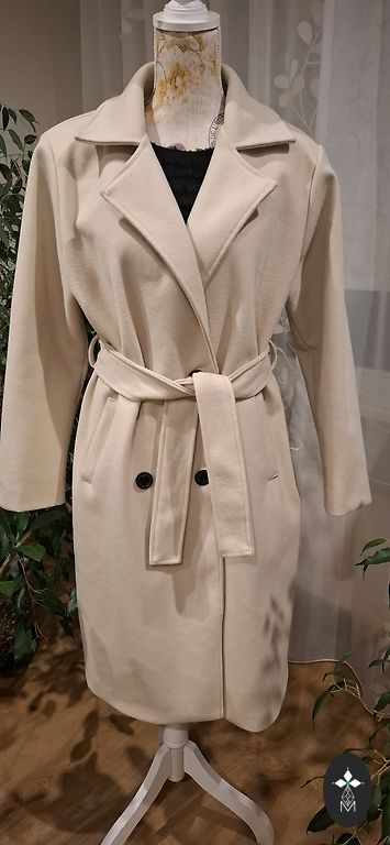 Dygsniuotas paltas, tiesus apatinis kraštas, gobtuvas su stovinčia apykakle, gobtuvas su virvute, gofruotas apatinis kraštas, dvipusis užtrauktukas, šoninės kišenės su užtrauktukais. ilgis 100 cm, krūtinės apimtis 120 cm. Pristatymo išlaidas apmoka pirkėjas.