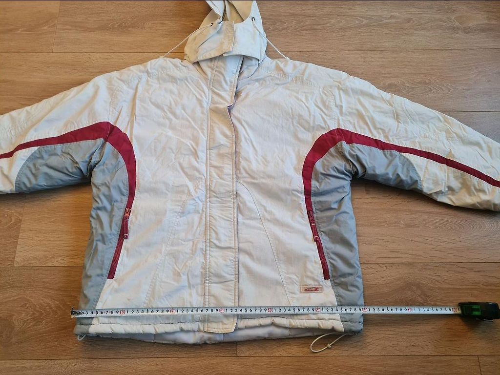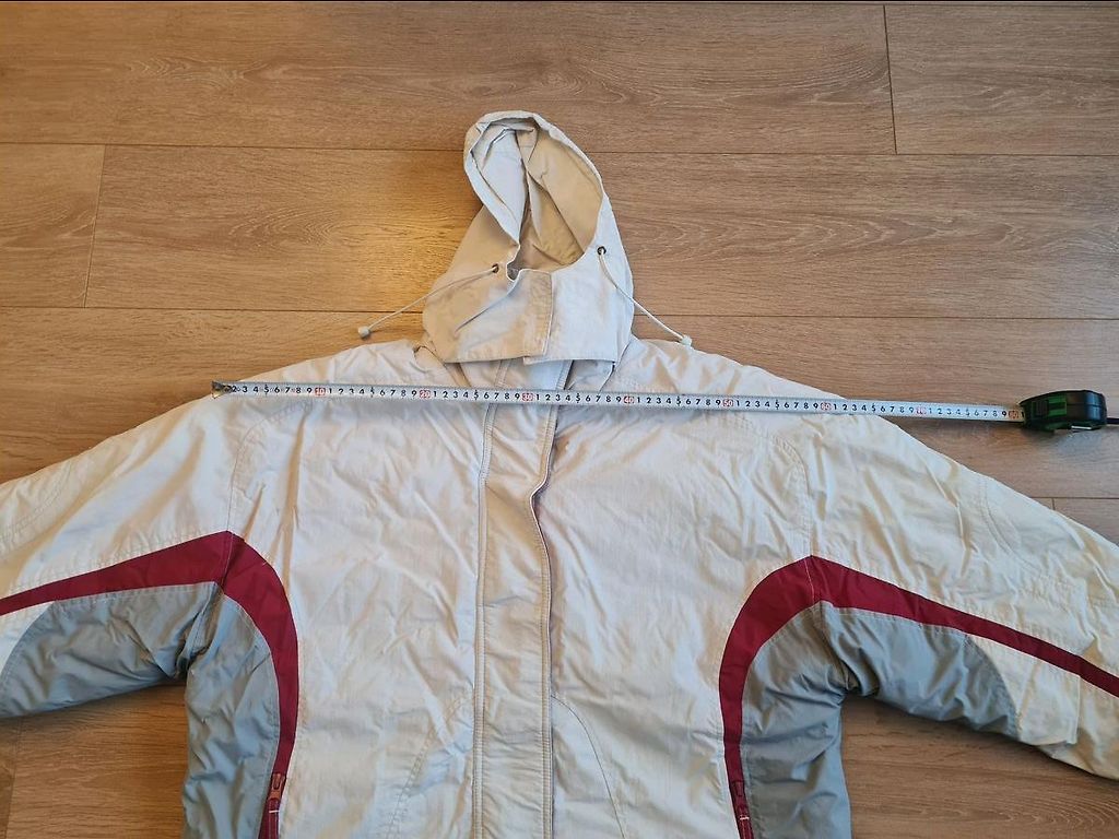 Ir kapuce, kabatas ar rāvējslēdzējiem un iekšējā sniega josta. Stāvoklis kā jauna. Savulaik pirkta par 170 Eur