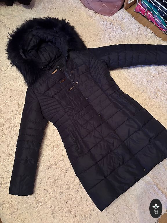 Natūralios pūkai - 90 %, natūralios plunksnos - 10 %. Nerealiai šilta. Holubar - yra pūkų striukių gamintojas. Pūkų striukė yra pagaminta iš vandeniui ir vėjui atsparaus audinio. Detalės: stovinti apykaklė, užsegimas su užtrauktuku, dvi išorinės kišenės ir viena vidinė su spaudės mygtuku, šoninės skeltės su užtrauktukais, vidutinio storio izoliacijos sluoksnis. Nešiojau ją ir nėštumo metu, nes šonuose galima atsegti užtrauktukus.