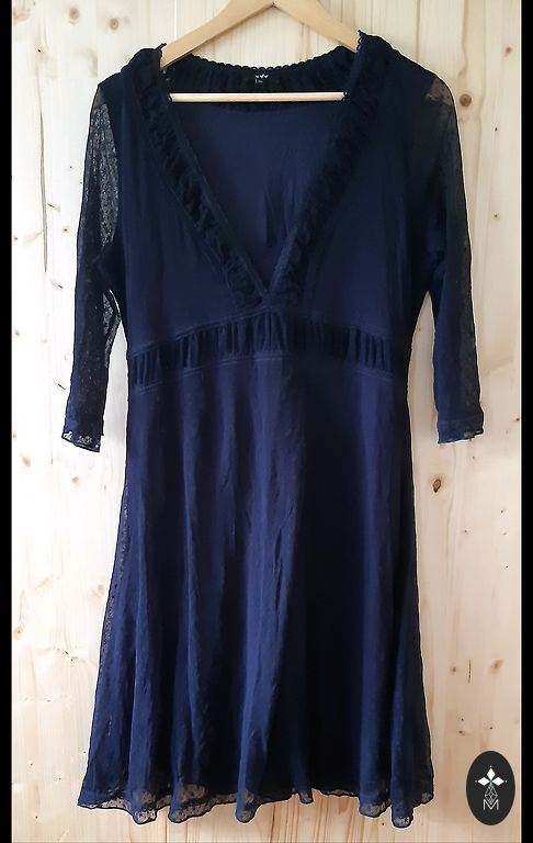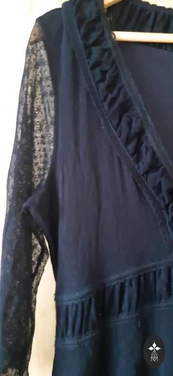 Great lace jacket. Fastened with a button at the top (see picture 4). Worn little, therefore in good condition. The manufacturer indicates size UK18. Measurements: width 56cm (measured from seam to seam on the back), length about 70cm, measured in the middle of the back. The shade is slightly darker than in the pictures.