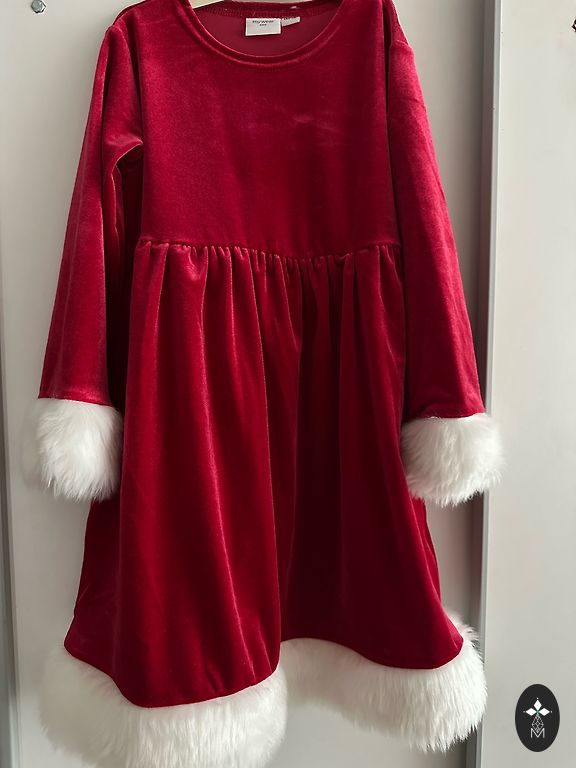 Рождественское платье, указанный возраст 6 лет, сказал бы на размер 116, возможно подойдет до размера 122.