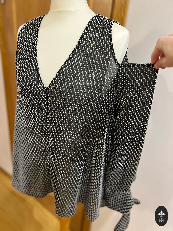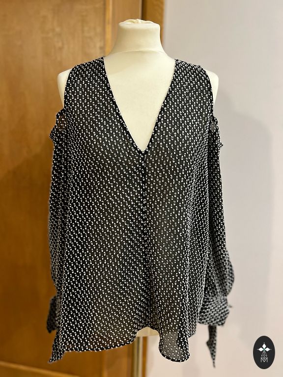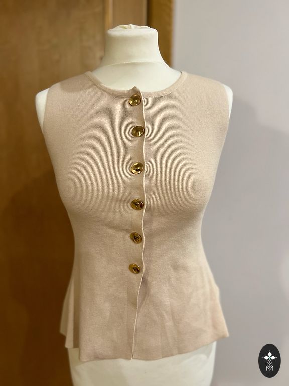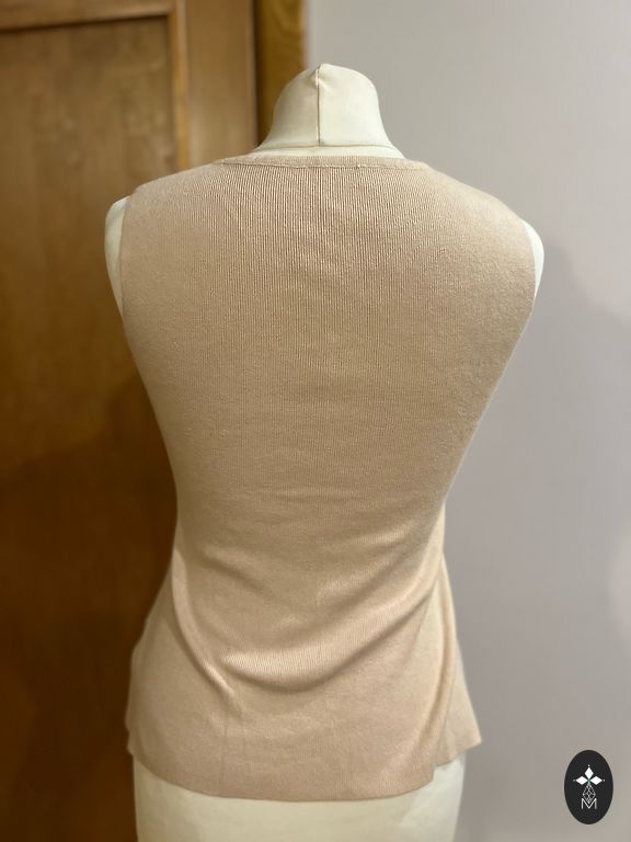 Ant etiketės nurodytas dydis - 14 (EUR 12), kuris atitinka L, bet sakyčiau, kad daugiau į M. Megztinis yra tampus.