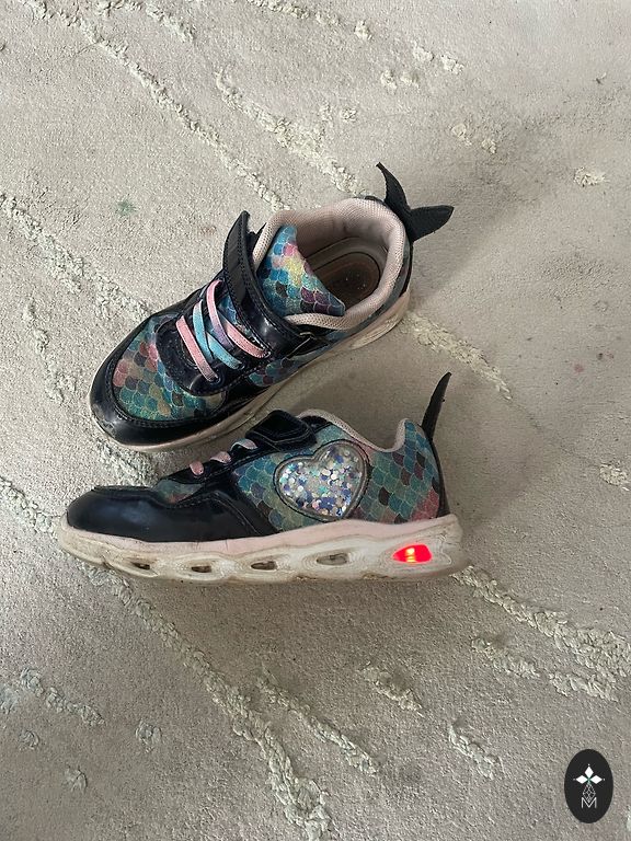 Not much worn, quickly became too small. The tips and the white line, as rubber, have darkened.