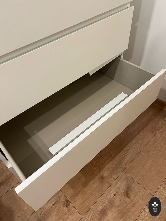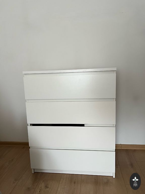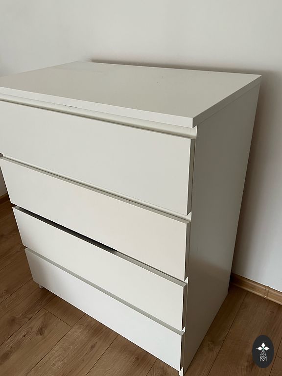 Balta komoda. Yra defektas, matomas nuotraukoje. Prekę galima atsiimti prie tc Sāga.