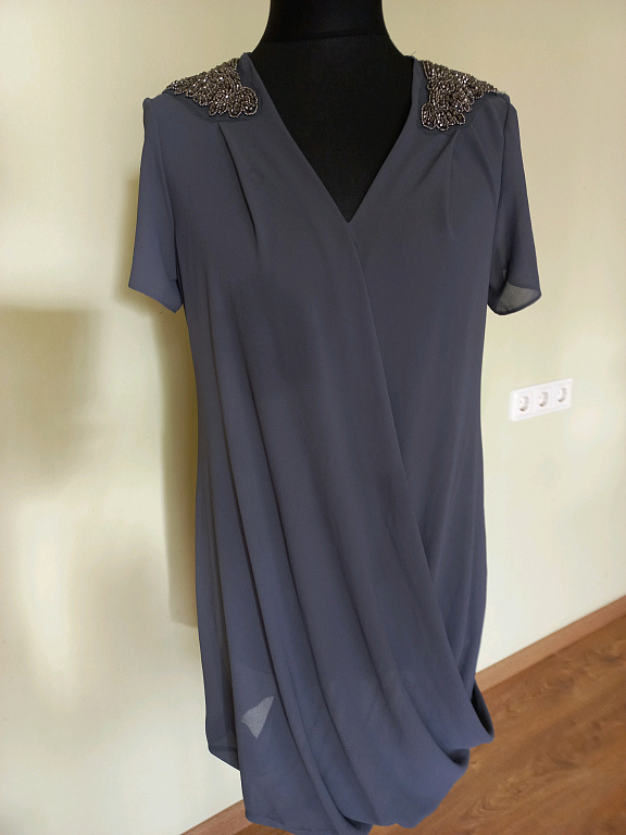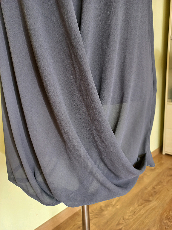 Ilgis 125 cm, krūtinės apimtis 100 cm, liemens 86 cm, klubų apimtis 116 cm.