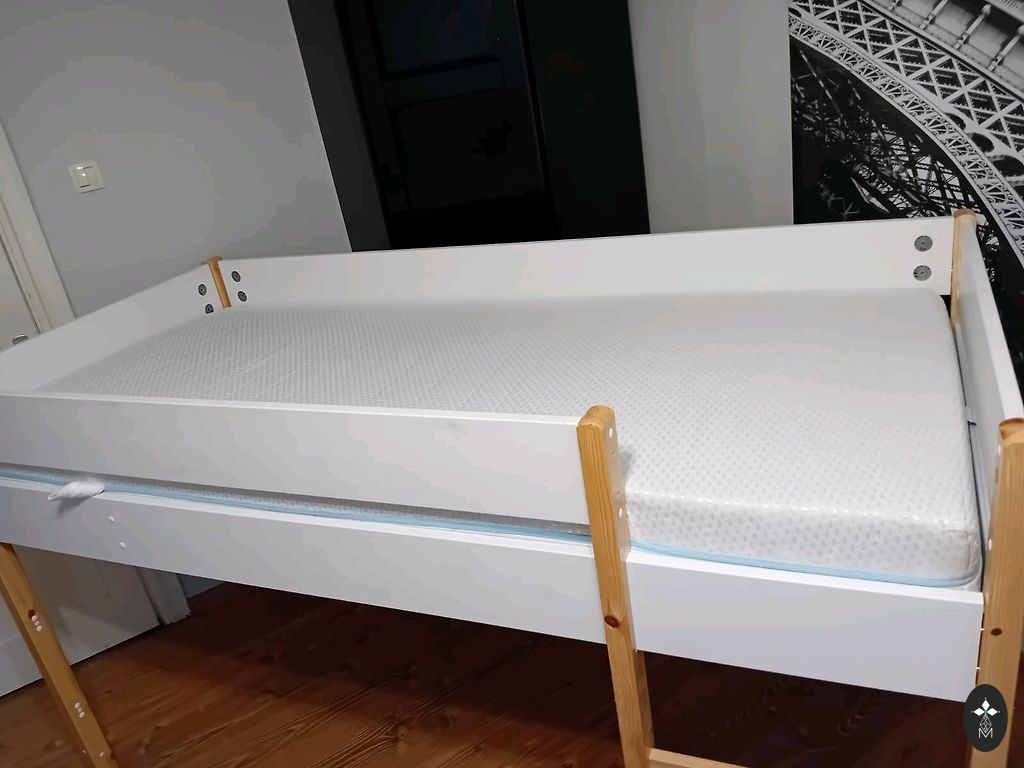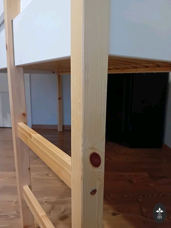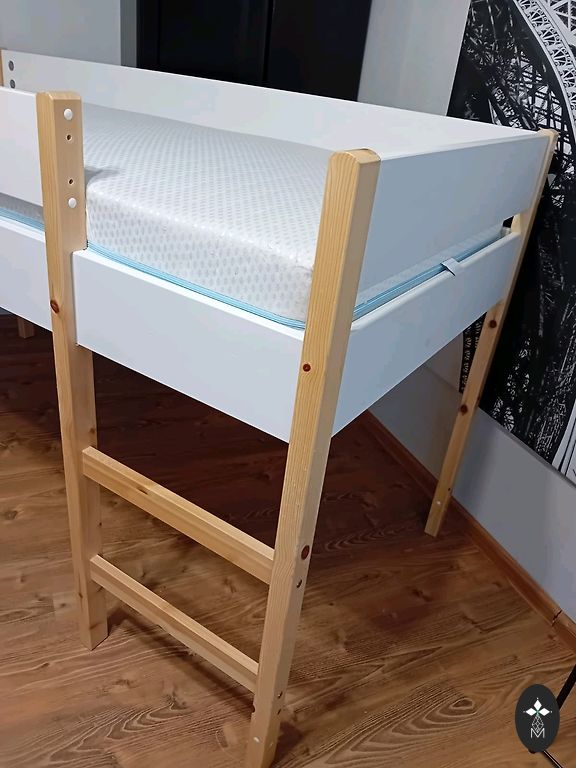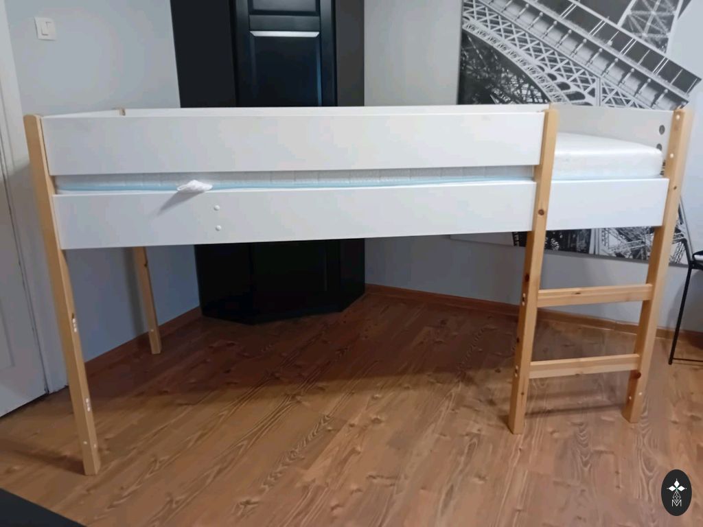Natūrali dviejų aukštų pušies medžio lova 70x160 cm su skalbinių dėže. Labai tvirta ir stabili, vienos šoninės atramos dydis 7x7 cm. Lova nesvyruoja. Galima naudoti kaip dvi atskiras lovas. Vienas čiužinys iš IKEA tiesiai kaip reikia 160x70 cm, o kitas kokosinis 153x70 cm, užsakytas kitai lovai, bet netiko, todėl buvo perduotas mums. Lova turi vizualinių įbrėžimų, galima nušlifuoti ir perlakoti. Bus prieinama išardytu pavidalu. Jelgavoje.