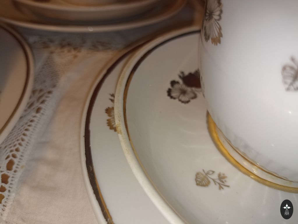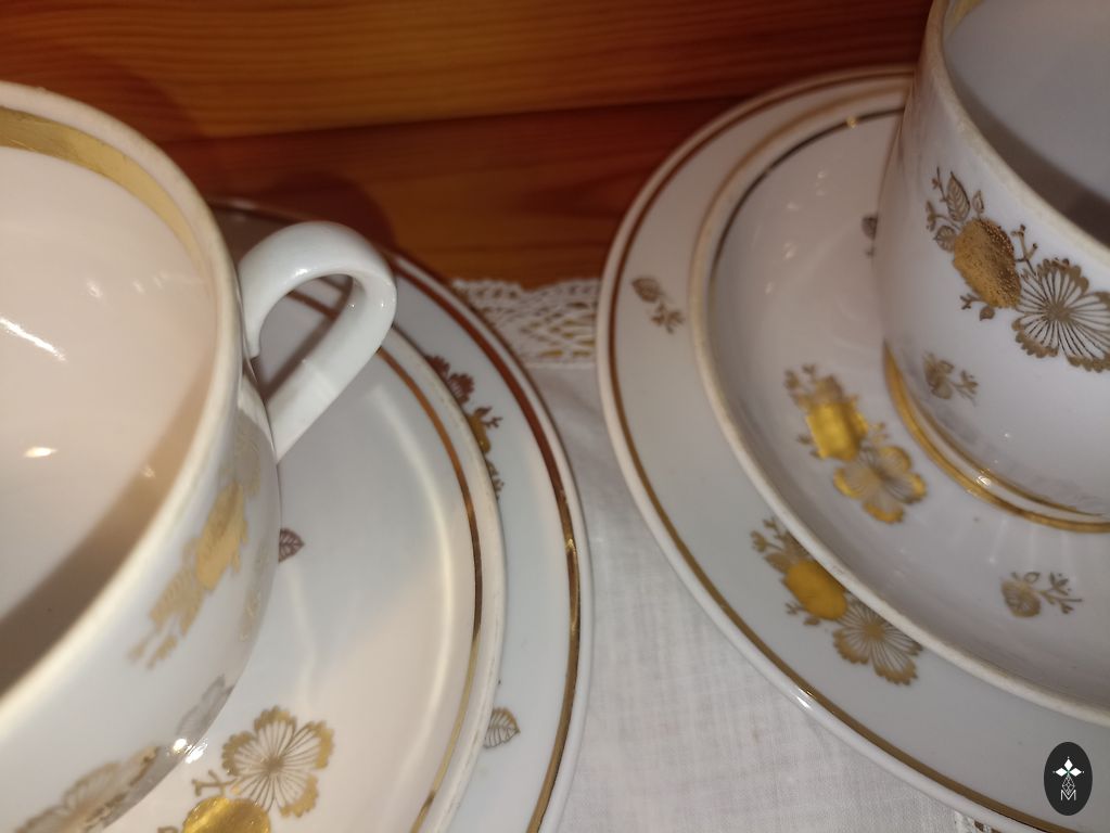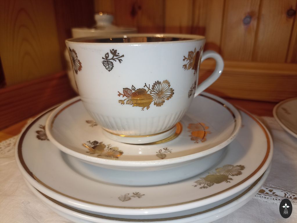 Porcelain tea cup and saucer. Royal Albert, England, around the 1970s. The gold is in good condition.