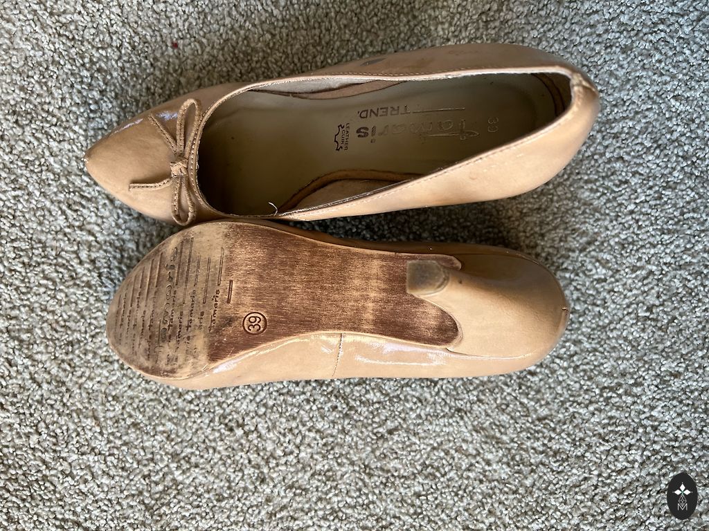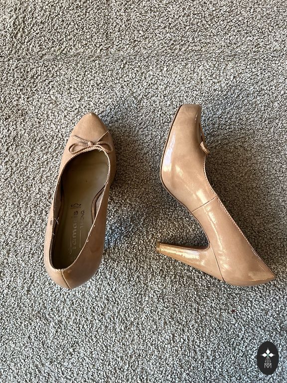 Selling my shoes because over time my foot has grown larger, so I'm switching to a bigger size. The shoes have a 6 cm high heel. The defect, which is not noticeable to others, is that the thin leather lining inside is worn in some places.