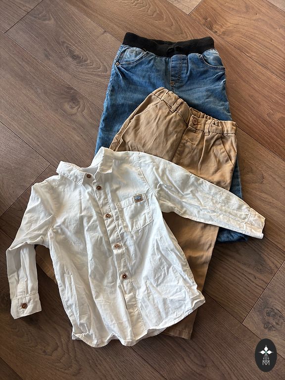 Kelnėse yra gumos, galima pradėti dėvėti nuo 92 dydžio.