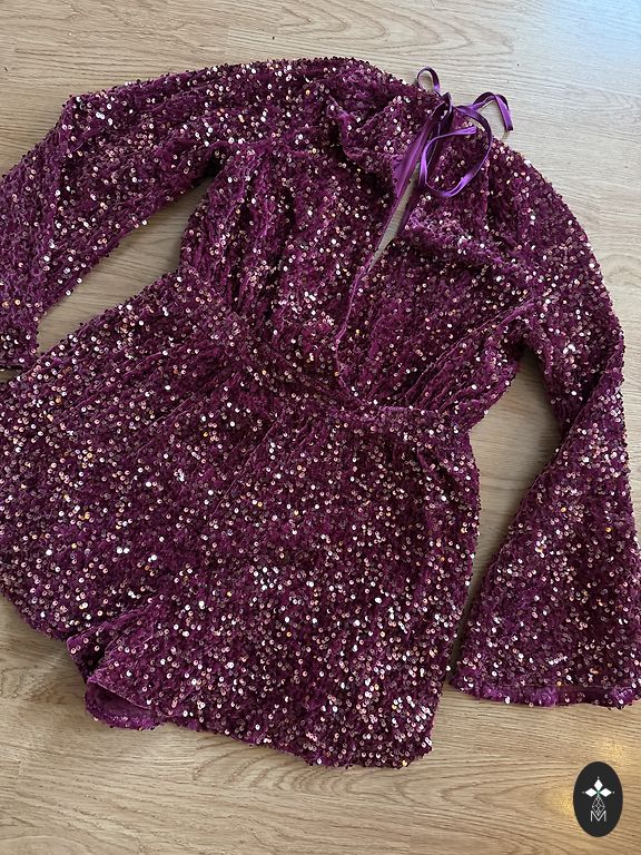 Платье-комбинезон с пайетками. Надето на мероприятие на несколько часов.