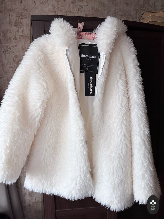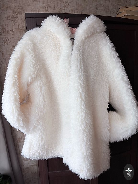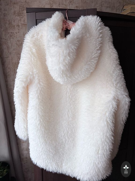 Dygsniuotas paltas, tiesus apatinis kraštas, gobtuvas su stovinčia apykakle, gobtuvas su virvele, gofruotas apatinis kraštas, dvipusis užtrauktukas, šoninės kišenės su užtrauktukais. Ilgis 90 cm, krūtinės apimtis 120 cm. Pristatymo išlaidas apmoka pirkėjas.