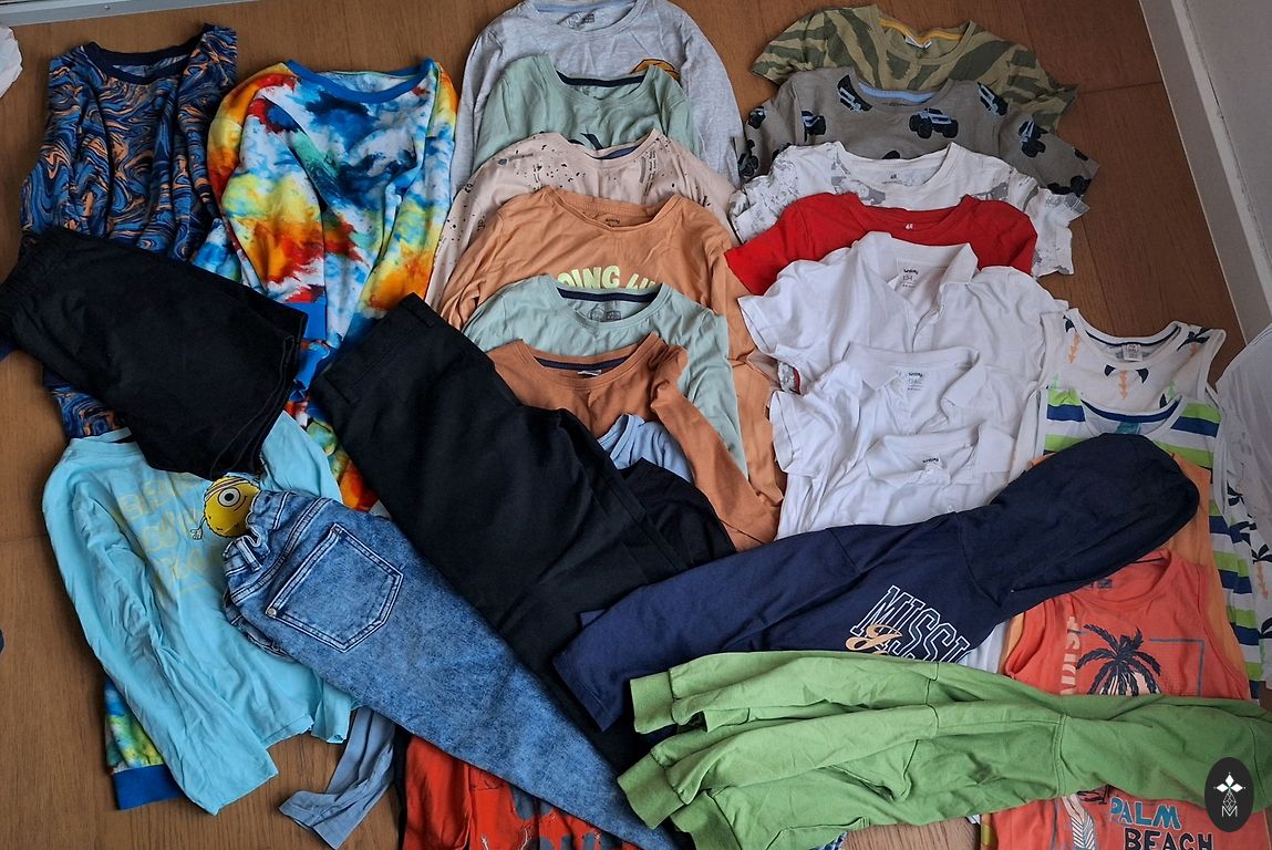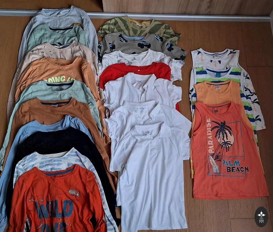 Visi daiktai yra geros būklės, kažkur +- yra dėmelė, bet nieko suplyšusio, būklė padori. Visi daiktai nuo 1 metų iki 2,5 metų drąsiai. Daug kelnių, bodžių, pižamų, marškinėlių, kepurių, džinsų su pašiltinimu... viską, ką matote nuotraukoje, parduosiu vienomis rankomis. ⛔️ Firmos įvairios⛔️