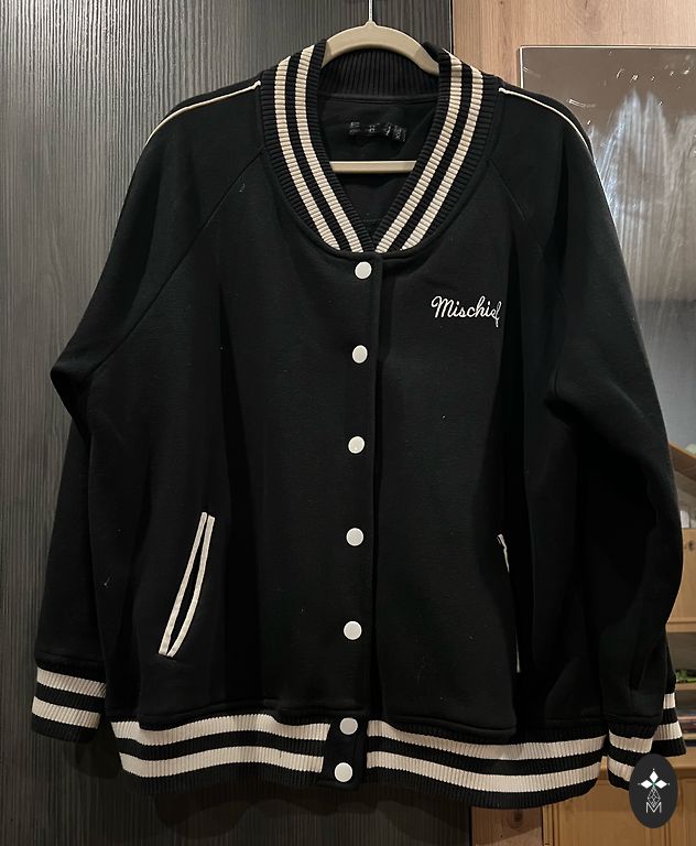 Soft, thick, and warm jacket, size XXL indicated, light beige. Worn twice, but it's quite large for me. Length 70cm, chest measured from outside 130cm, from inside 150cm, but I would suggest it would be comfortable up to +/- 120cm in the chest. The material is fabric-like, not rustling. The hood can be removed, tightened, and buttoned to protect from the wind. The sleeve ends have knitted cuffs. If other measurements are needed, feel free to ask, I will measure.
