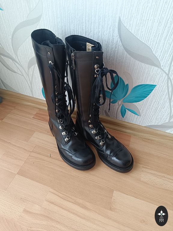 Ilma soojustuseta. Sisetalla 26.5 cm normaalsele jalale. Tald vahetatud kontsade jaoks. Pikkus 44 cm. Üleval sääreosa 21 cm x 2. Väike defekt seespool üleval, nahk koorub, kuid see ei sega kandmist. Ostsin siit Andelest, kuid mulle on see liiga väike. Saatmise kulud katab ostja.