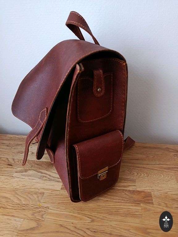 Mitmekülgne nahast/riidest kott õlarihmaga. Sees palju sektsioone, väljas on samuti nööbitav sektsioon. Laius 35-38 cm, kõrgus 25 cm. Täiendav saatmine.