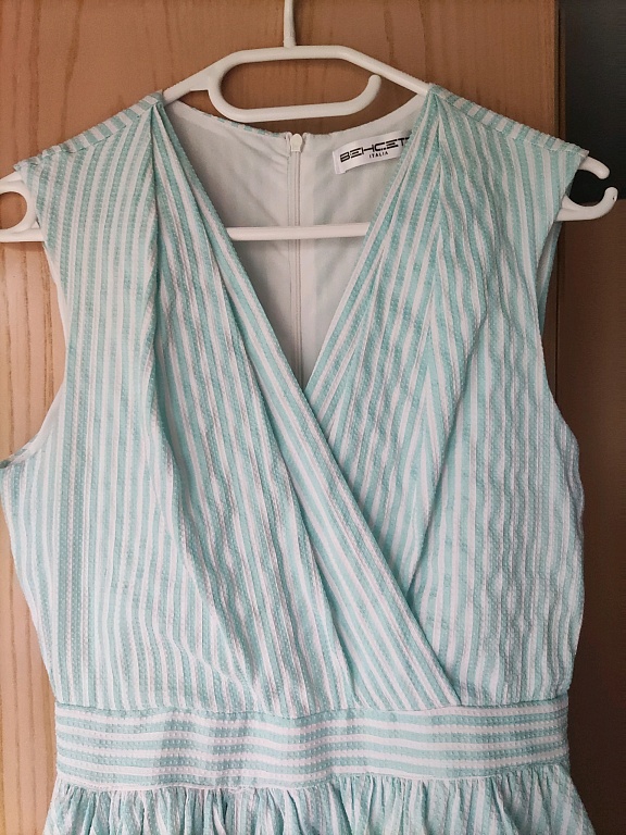 Это платье цвета фуксии (не совсем розовое). Б/у, но в хорошем состоянии, без дефектов. Удобное, свободно падающее, с вытачками на груди и спине. Застежка на пуговицах сзади (как на фото). Спереди от плечевого шва до нижнего края 90 см; сзади с небольшим удлинением ~98 см. Рукава 3/4. В платье добавлено 5% эластана. Отправляю только через почтовый автомат; стоимость отправки включена.