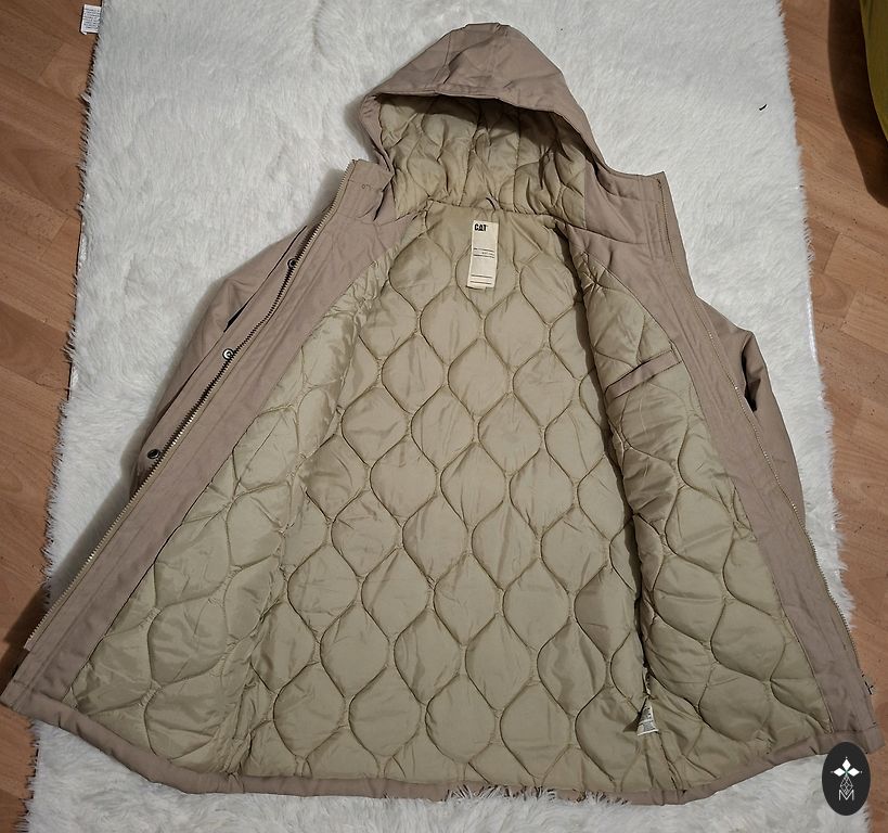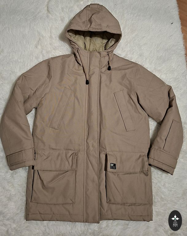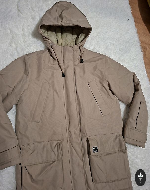 Krūtinė 120 cm, liemuo 116 cm, klubai 122 cm, ilgis 97 cm, rankovė nuo peties 62 cm.