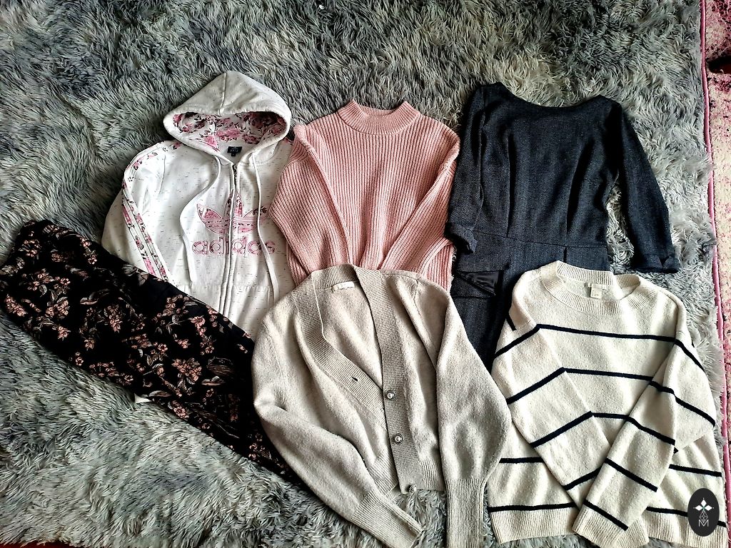 Juodas megztinis su aukštu kaklu ir grožiais apačioje (blizgučiais) ZARA viršus, naujas kostiumas, SHEIN marškinėliai, nauja Zara suknelė, baltas marškinėliai su širdelėmis, džinsai, 2 šilti megztiniai.