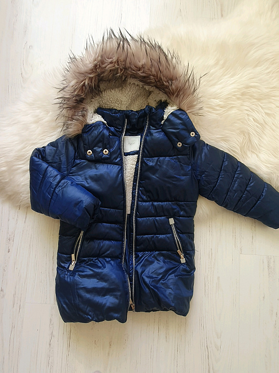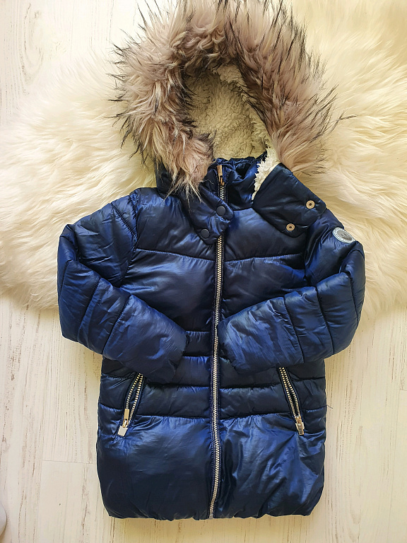 Labai šilta žieminė striukė, tinka 110-116. Yra nedidelis vizualinis defektas - striukės priekyje su kažkuo ištepta, galbūt su kokiu nors cheminiu valikliu galima pašalinti, nemėginau. Rankovės šiek tiek nutrintos. Bet visa kita geros būklės.