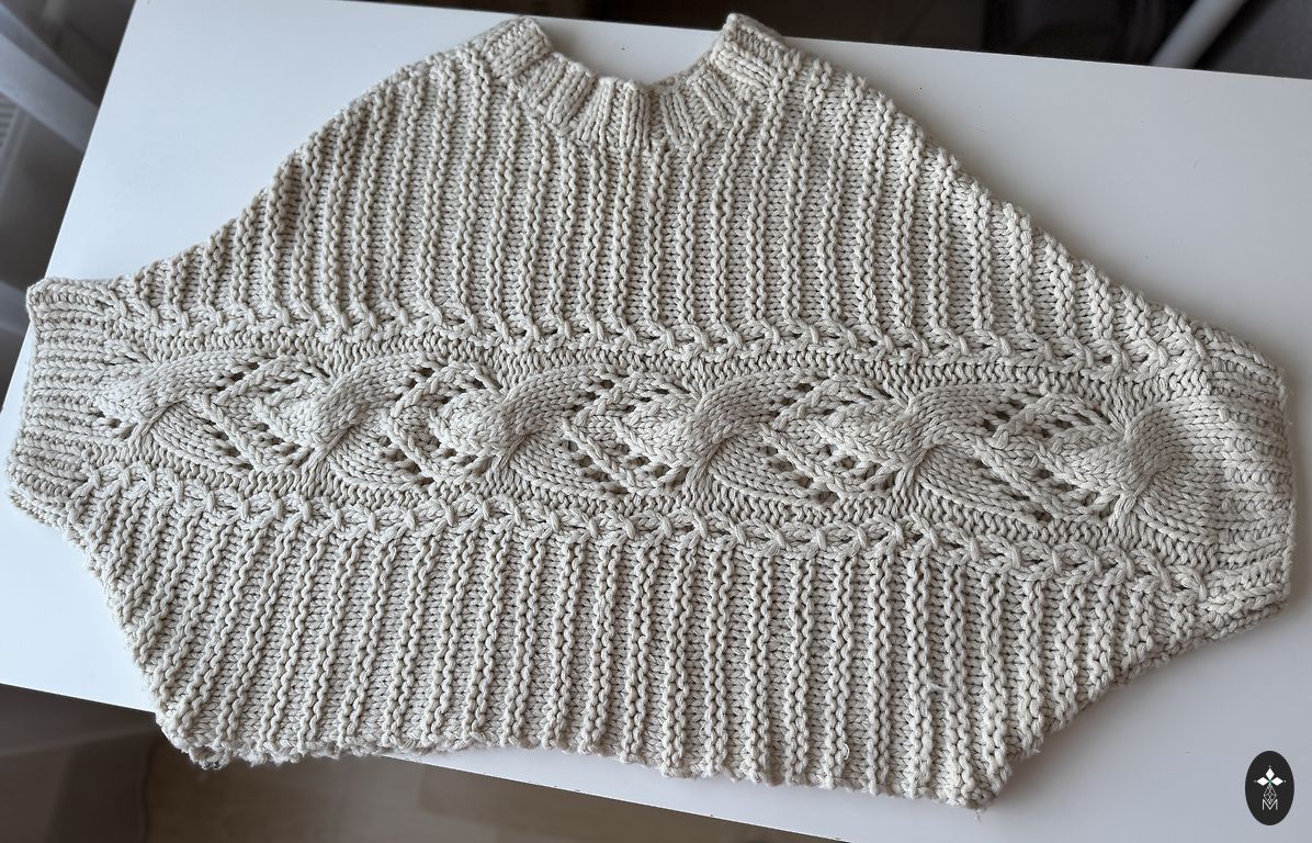 Stilingas megztinis su pynėmis. Rankose yra angos, surištos megztu virve. Dydis nuo M-L. Atrodo stilingai.
