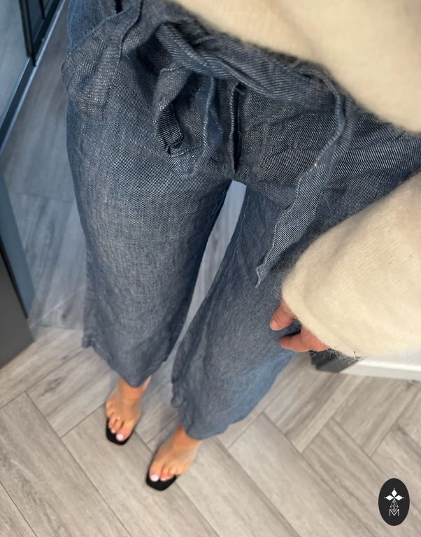 Kelnės gražios plytų spalvos, ties juosmeniu yra įbrėžimų ir nusidėvėjimo požymių, manau, kad tai buvo padaryta tyčia. Medžiaga - linas 43% ir liocelis 57%, naujos, etikečių nėra.