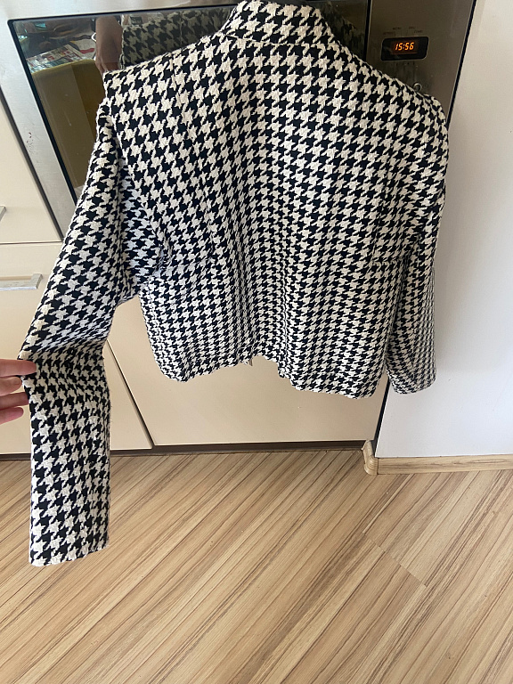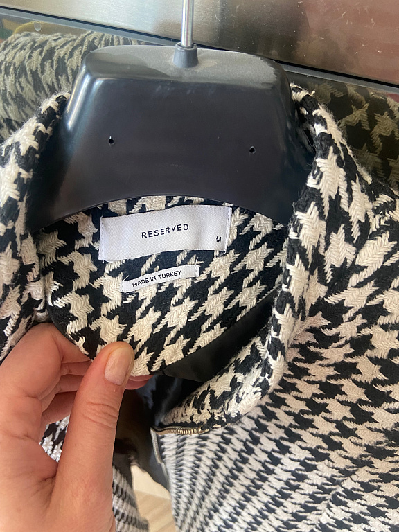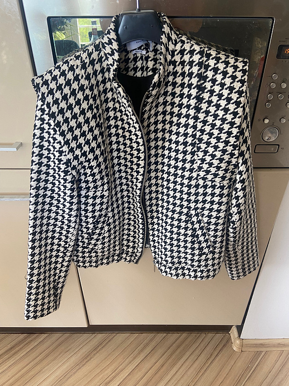 Jacket worn for one season, comfortable and cozy. Washed, in good condition. Approximate measurements: length – 84 cm, chest circumference – 130 cm, sleeve length – 61 cm. Spring-autumn jacket, also suitable for a mild winter. Sleeves may appear slightly used. Photos with the model are taken from reserved.com