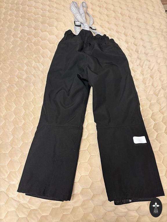 Надеты несколько раз. Талия регулируется клипсами по бокам. Признаков использования нет. Указан размер 6 (122 см), подойдет до 128. Лямки съемные. Талия в измерении 37 см x 2, длина 72 см, внутренняя длина штанины 50 см.