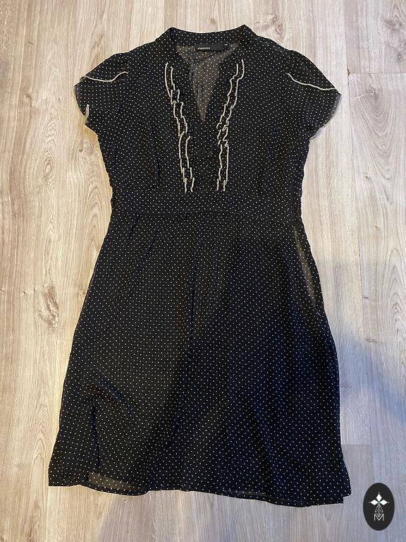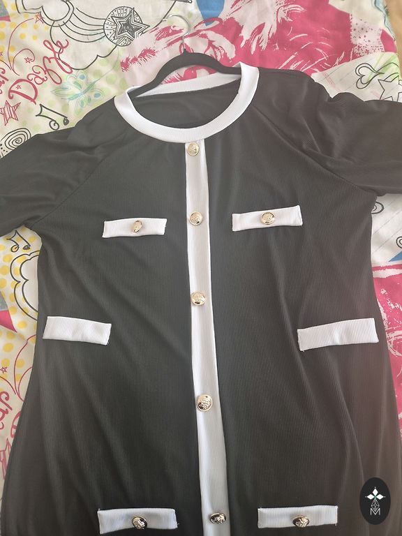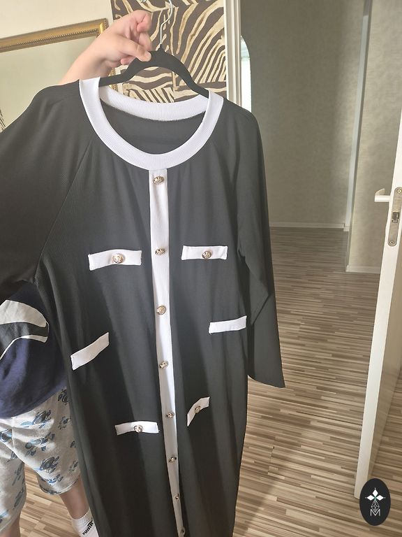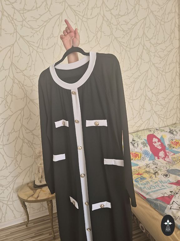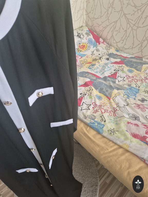 Pikk kleit või poolpikk. Kleidi pikkus 120 cm. Laius rinnaosas 46x2 cm. Tegelikult sobib suurus m/l.