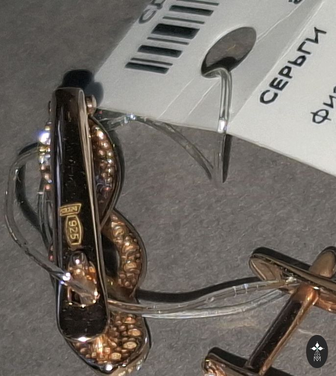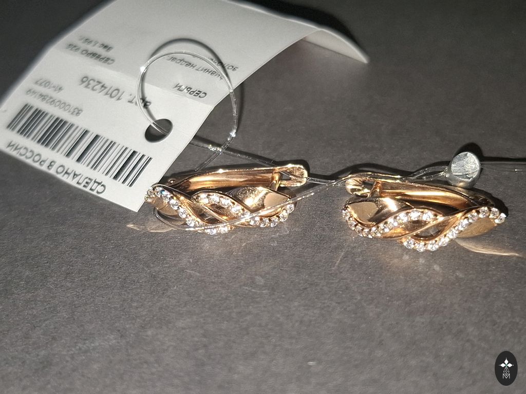 Aukštos kokybės sidabras su 750 geltono aukso danga. Apvalūs žiedai su gyvatės raštu, su saugiu užsegimu. Iš JAV. Lengvi ir nerealiai gražūs. Skersmuo 2,5 cm.