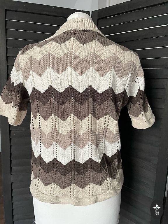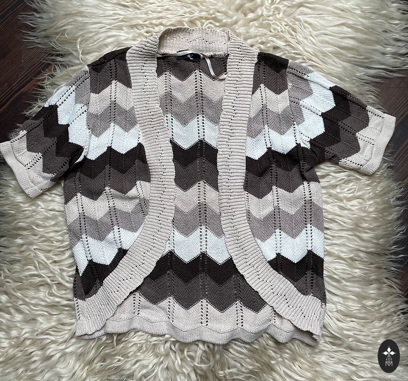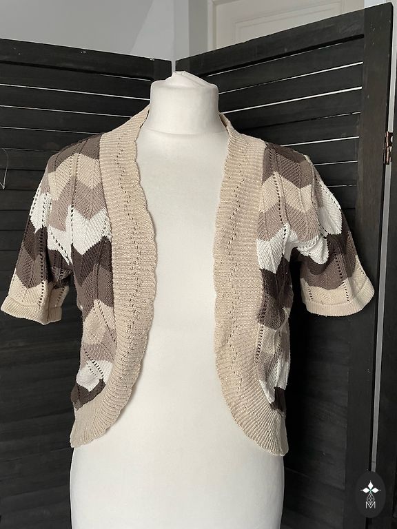 Adīta kokvilnas jaka, piedurknes 3/4, garums 50cm, izmērs franču 40, intern M. Krāsa dzeltena(sinepju tonis)