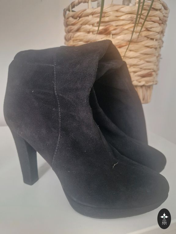 Tumši pelēki. Ērti zamšadas zābaki, iekšpuse pilnīgi no ādas . Papēža augstums 8cm