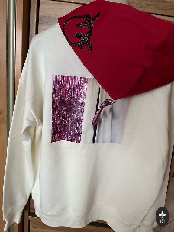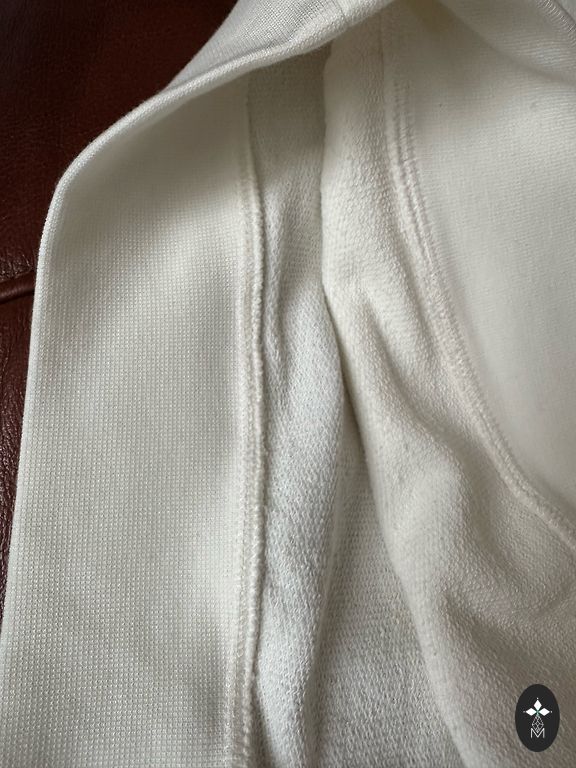 30% composition of six, non-prickly. Low neckline. Tunic covers the bottom. Straight pants, length 103 cm. Suitable up to size L.