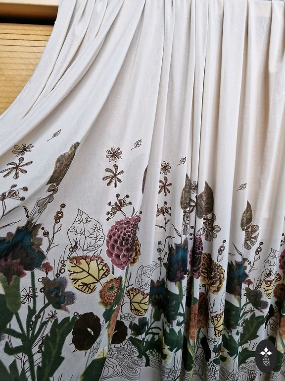 Šilkiniai audiniai. Dėmėtas 1,60m×0,75m, rudas 1,60m×1,10m, margas 4,50m×1,15m, melsvas pamušalo audinys 3,40m×1,00. Kaina už visus.
