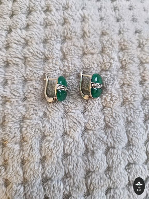 Silver earrings with a dark blue diamond. I have worn them once, but they are not suitable for me...