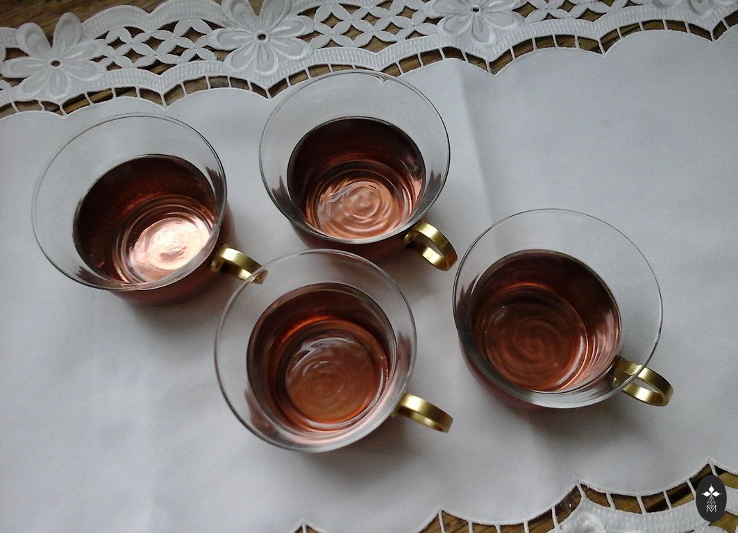 Klasikinė angliška arbatos puodelis su lėkštute ir pyrago lėkštėle. Dekoruota ikoniškomis raudonomis, rožinėmis ir geltonomis rožėmis bei 24k auksavimu.