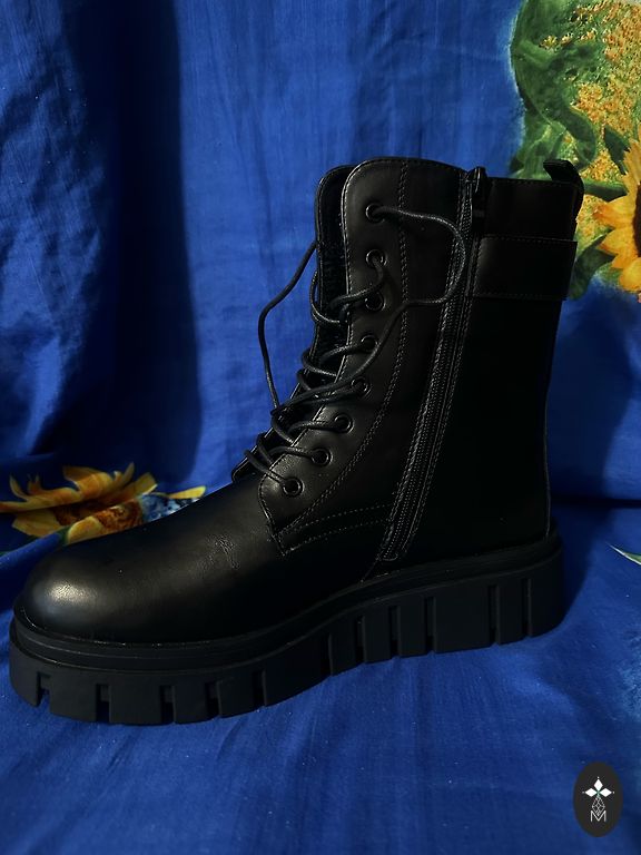 Pusbačiai, juodi, dirbtinė zomša ir kailis, platforma, pašiltinti, Italija.