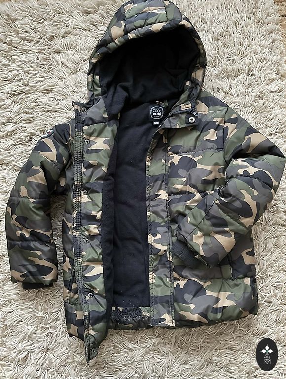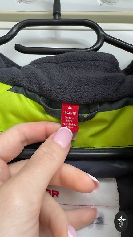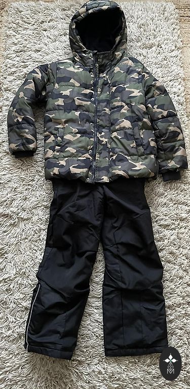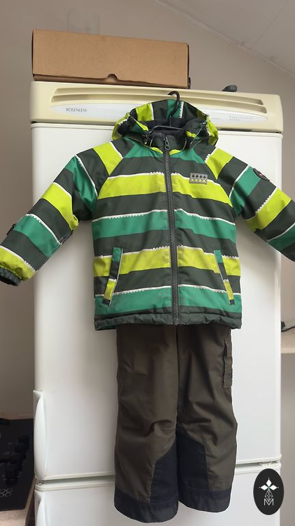 The size more closely matches 116cm. Jacket H&M, pants from another brand. Pants made of softshell material.