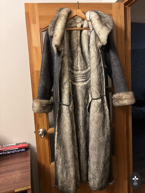 Didesnis dirbtinio kailio paltas.