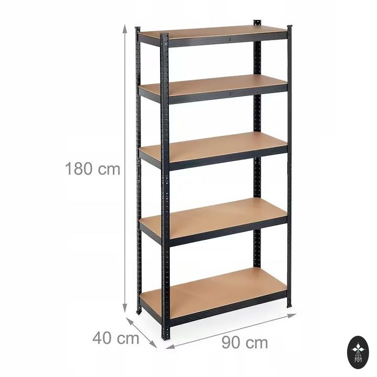 Ļoti izturīga metāla plauktu konstrukcija. Plauktu konstrukcijas slodzes izturība ir vairāk par 1 tonnu vienam plaukta līmenim. Izmēri: 180*90*40 cm
