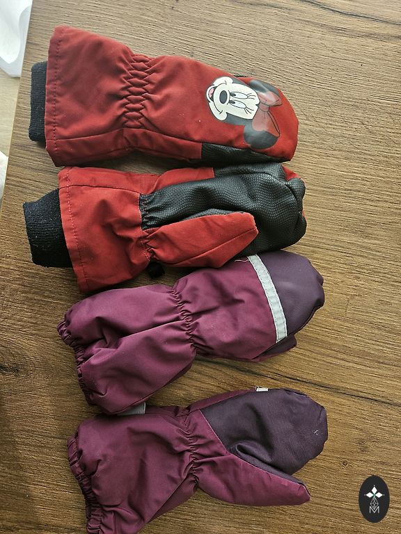 Tabeli järgi sobib 7-10-aastastele. Üks peopesa (parem) on rohkem kulunud, kuid on ilma plekkideta ja aukudeta.