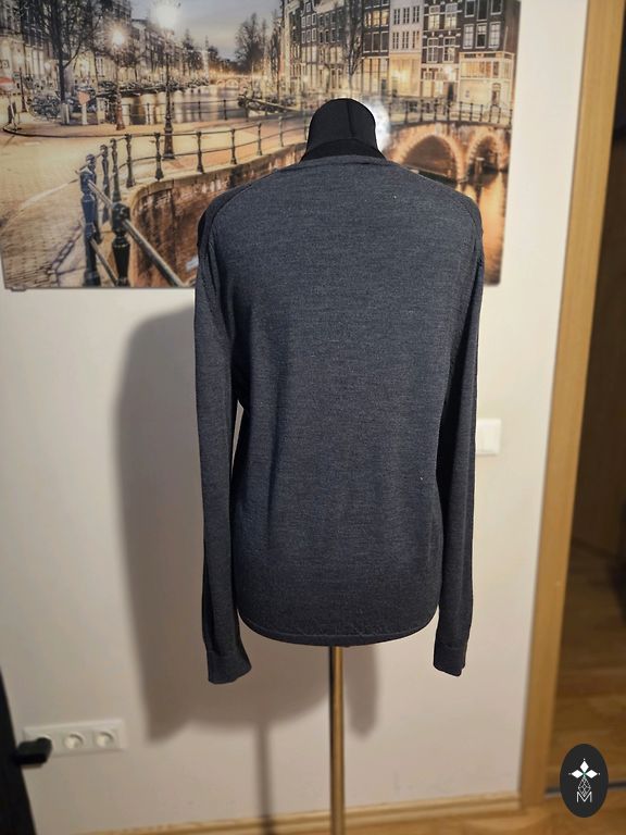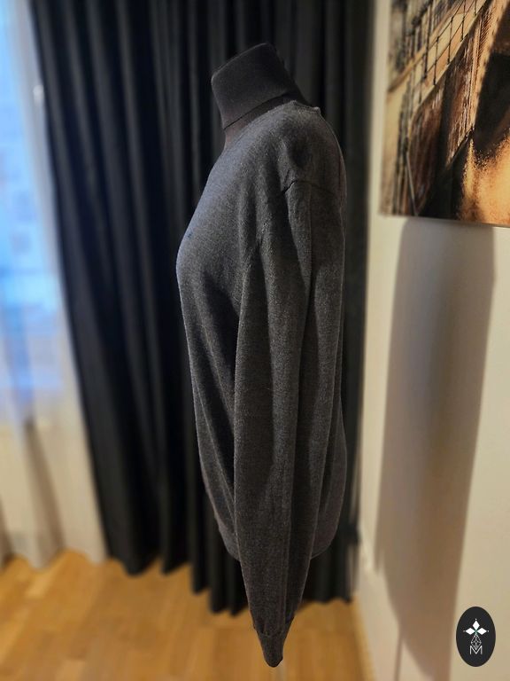 Max Mara Leisure megztinis, pagamintas iš 100% virgin wool – tankios, minkštos ir šiltos aukštos kokybės pirminės vilnos. Trikotažas vienodas, tvarkingai megztas, gerai išlaiko formą ir neatrodo „pavargęs“.
